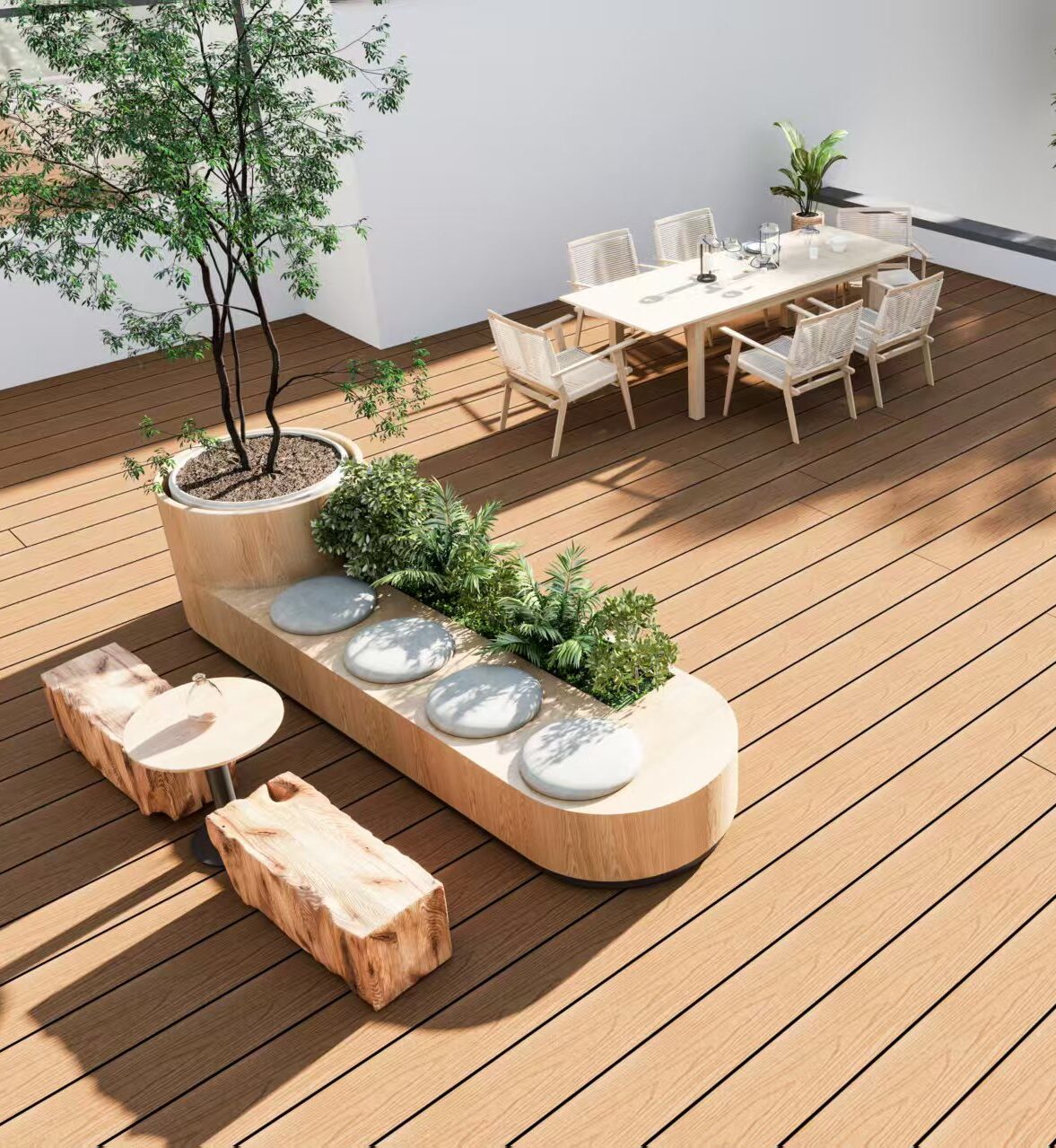 Our composite decking combines the natural beauty of timber with wood-plastic durability. Resistant to moisture, fading, and warping, it’s a low-maintenance, sustainable choice for outdoor areas.